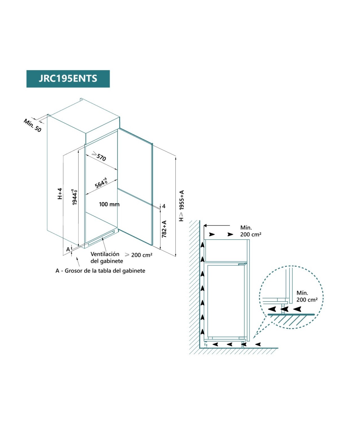 Frigorífico combi integrable 196x54 cm E