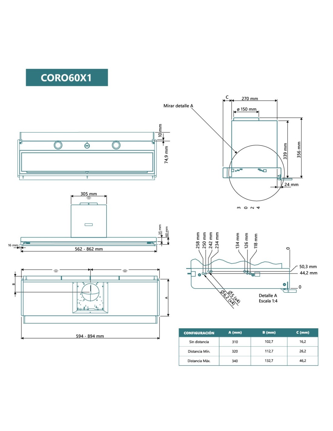 - Capacidad de extracción (Mín 255 m3/h - Máx 620 m3/h)