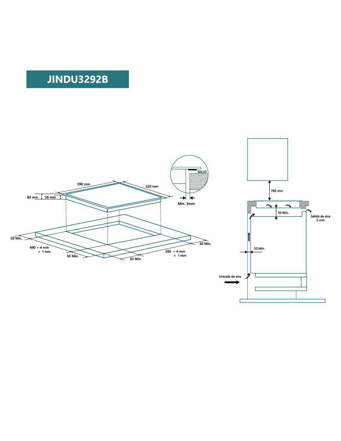 - Zona derecha doble 290mm (3.000/3.800W boost)