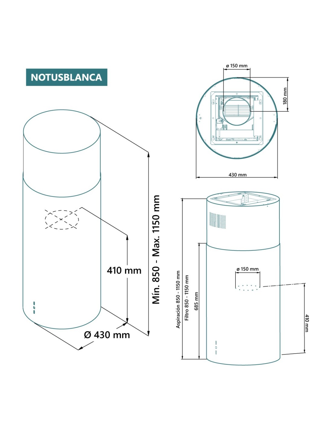 - Capacidad de extracción (Mín 240 m3/h - Máx 603 m3/h)