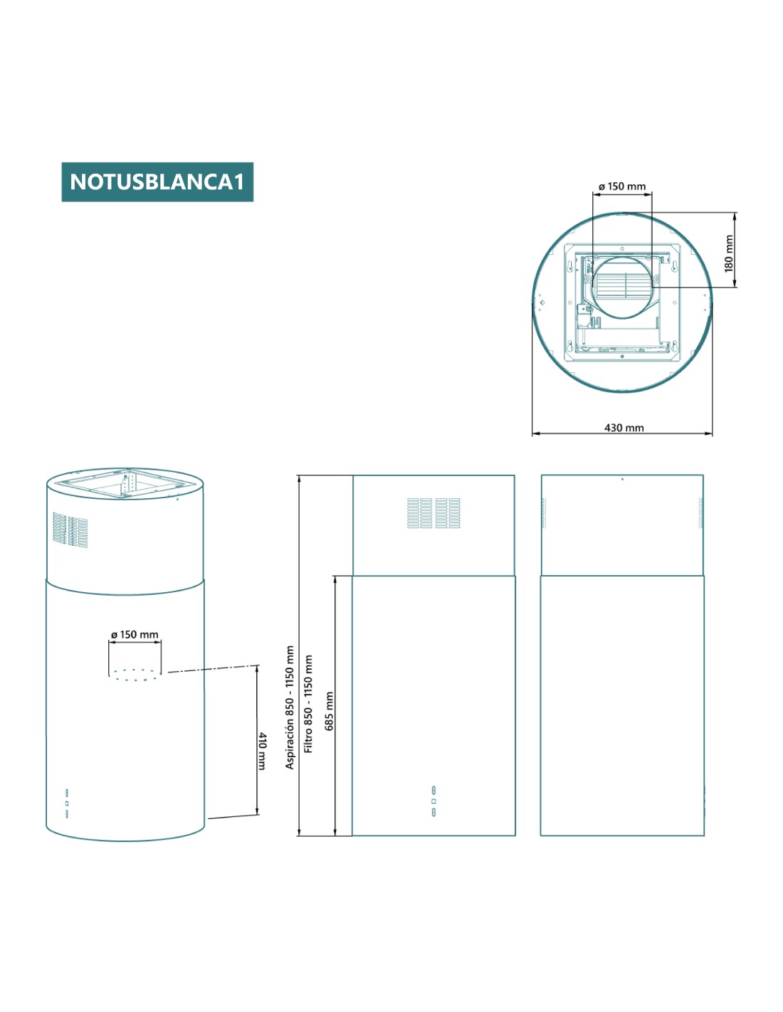 - Capacidad de extracción (Mín 240 m3/h - Máx 603 m3/h)