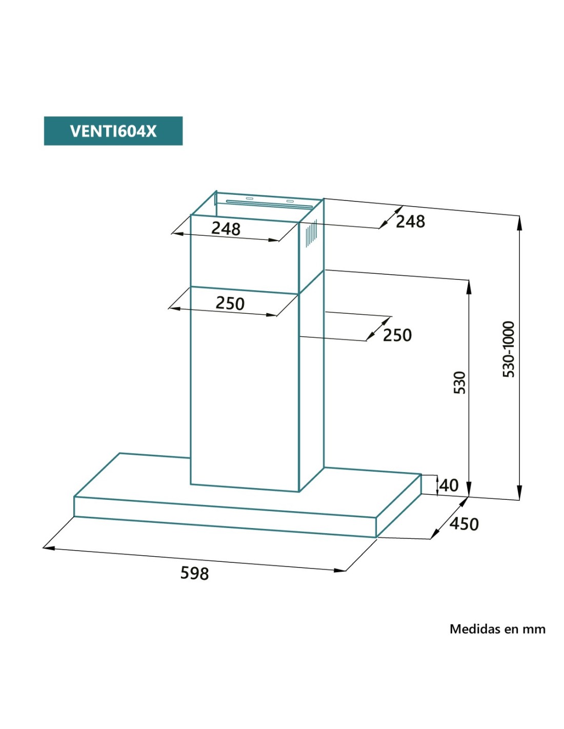 Campana de pared 60 cm Inox
