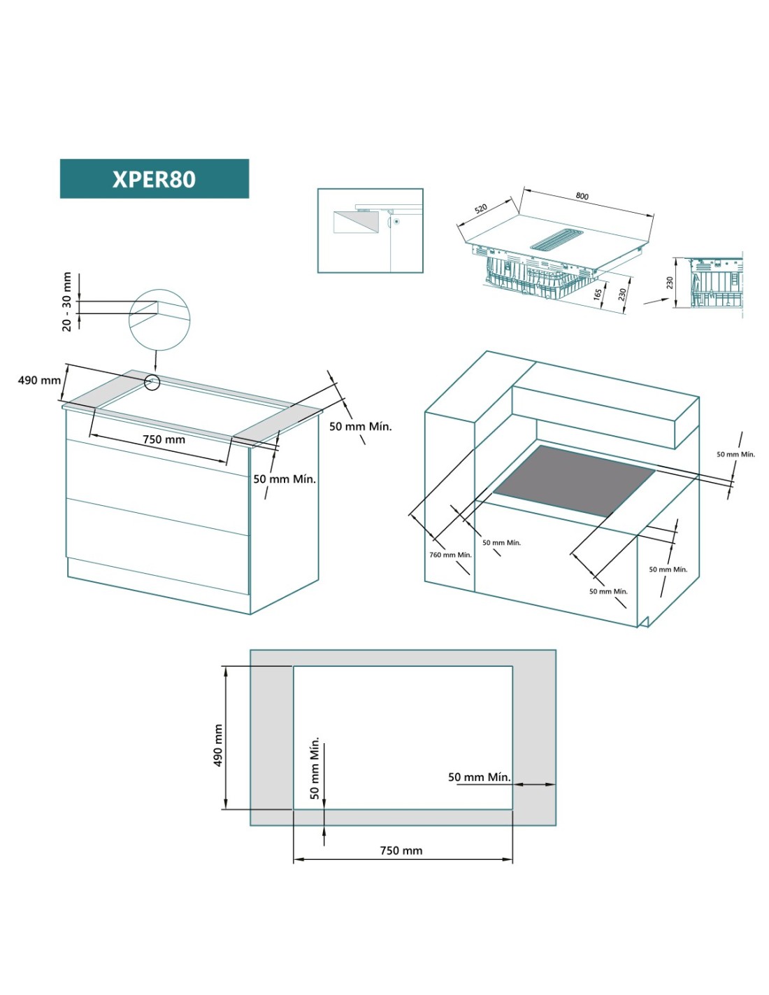 - Zona derecha 220x380mm (3.300/3.700W boost)
